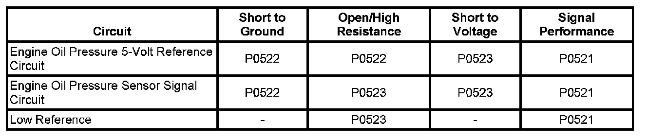- Engine Oil Pressure (EOP) Sensor Circuit Low Voltage