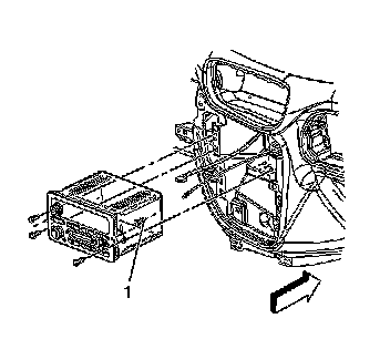 4. Partially remove the radio disengaging the radio rear alignment locator (1) to gain access to the electrical connectors.