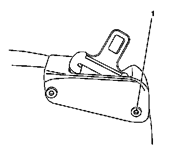 4. Release the seat belt bezel from the seat back by pressing in the buttons (1) on the plastic retainers.