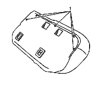 4. Use the J 36796 to remove the push pins (1) on the underside of the seat bottom, in order to start the seat cushion removal procedure.