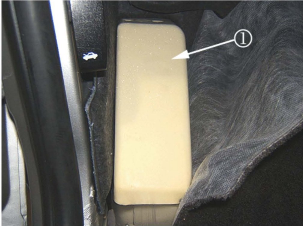 Remove the foam foot rest block (1) from the vehicle.