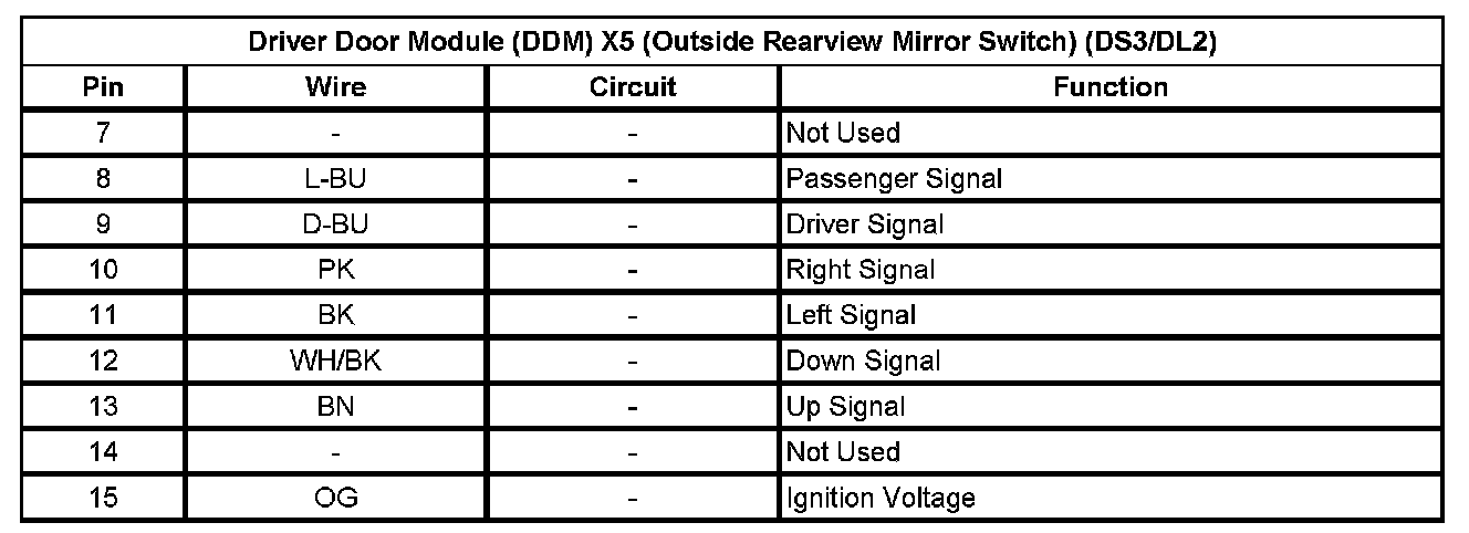 Driver Door Module (DDM) X5 (Outside Rearview Mirror Switch) (DS3/DL2)