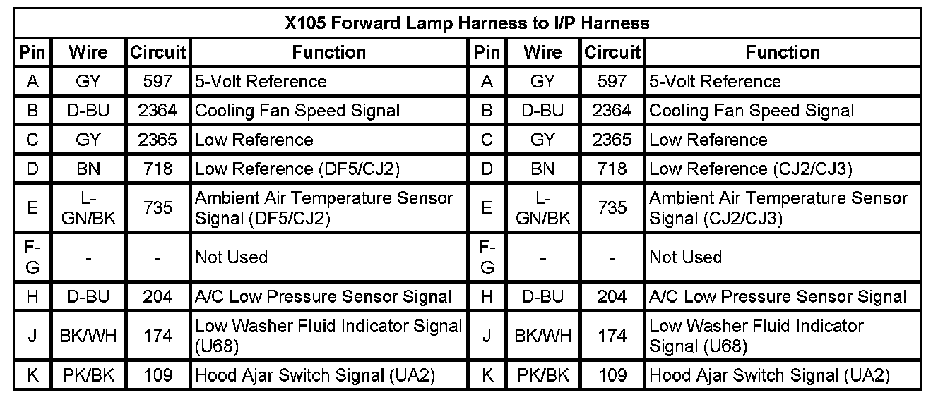 X105 Forward Lamp Harness to I/P Harness