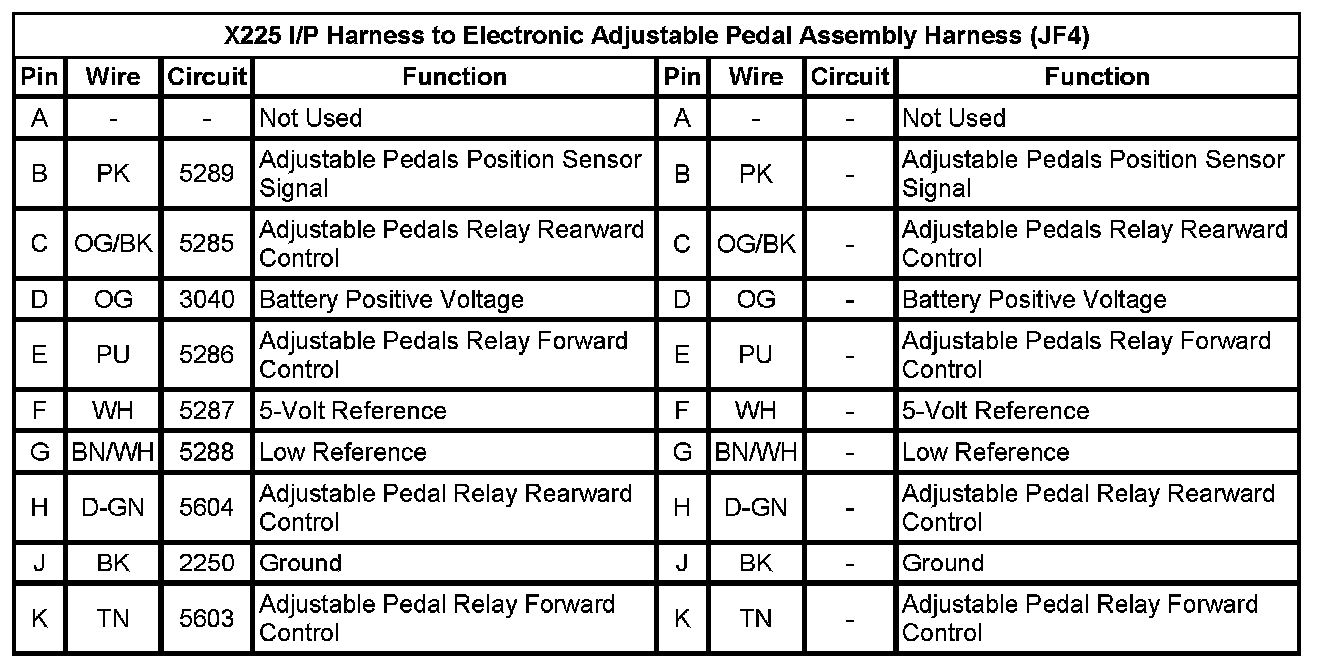 X225 I/P Harness to Electronic Adjustable Pedal Assembly Harness (JF4)