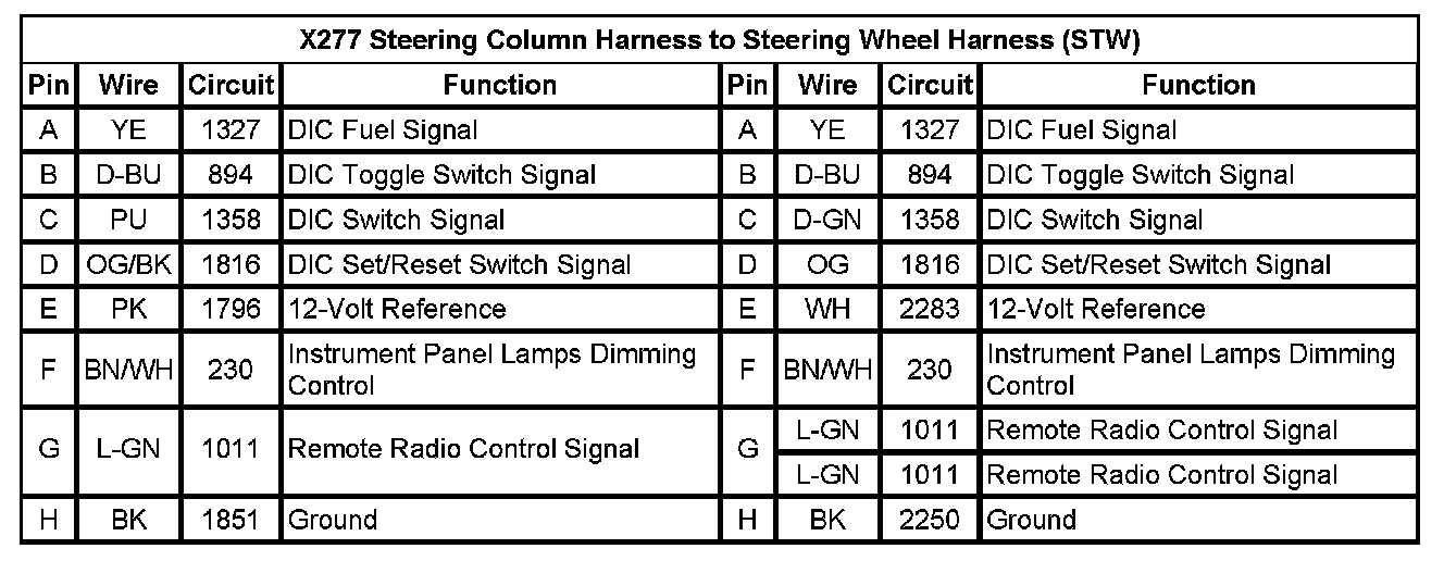 X277 Steering Column Harness to Steering Wheel Harness (STW)