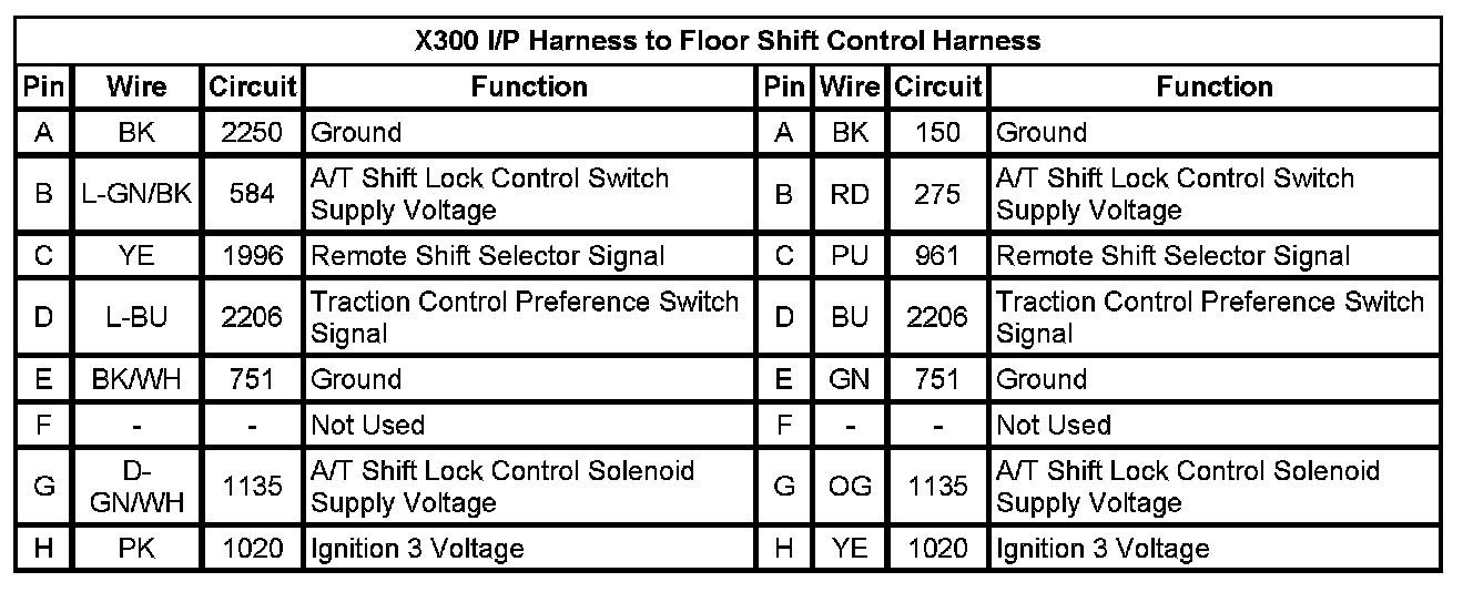 X300 I/P Harness to Floor Shift Control Harness