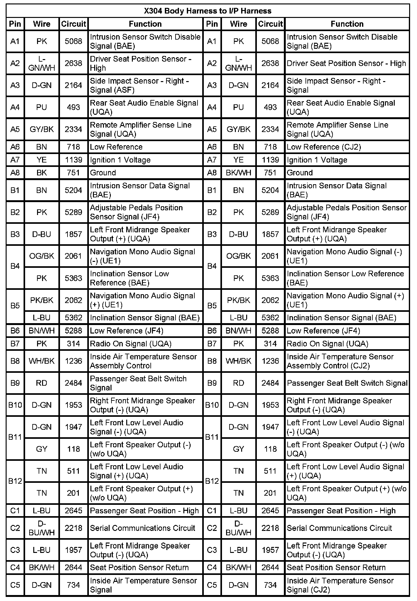 X304 Body Harness To I/P Harness (Pin A1 To C5):