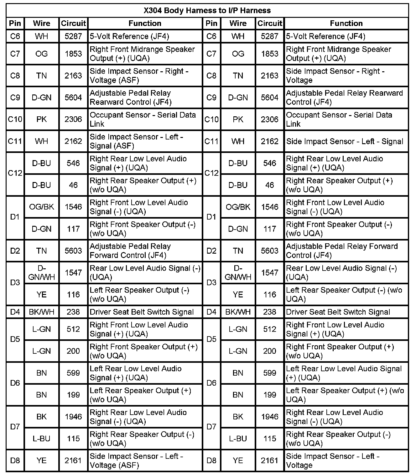 X304 Body Harness To I/P Harness (Pin C6 To D8):