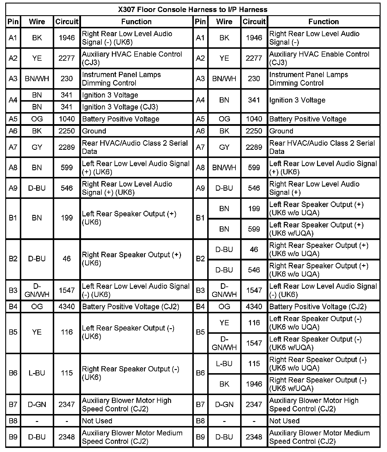 X307 Floor Console Harness to I/P Harness