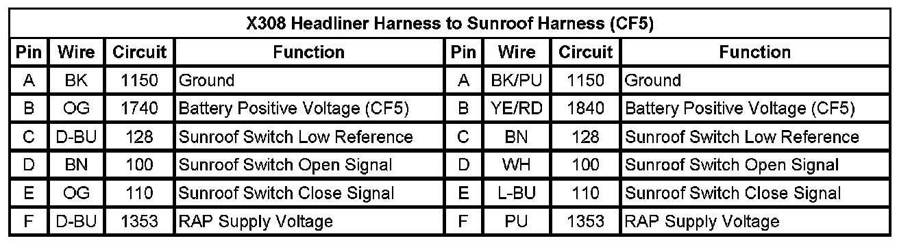 X308 Headliner Harness to Sunroof Harness (CF5)