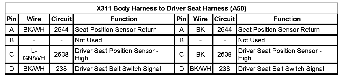 X311 Body Harness to Driver Seat Harness (A50)