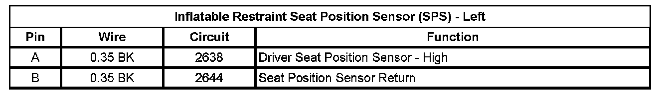 Inflatable Restraint Seat Position Sensor (SPS) - Left