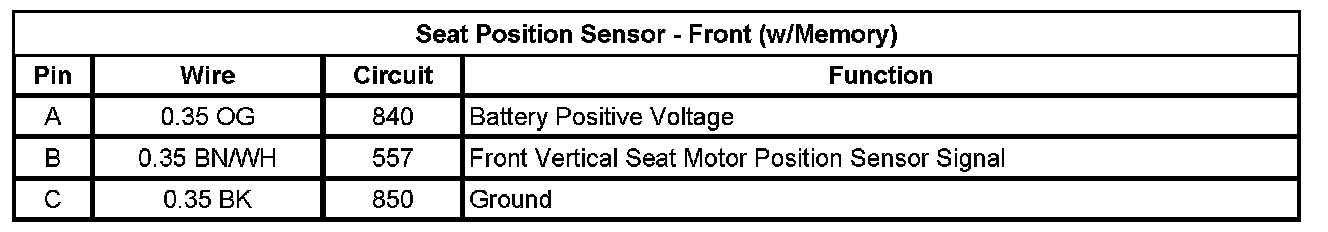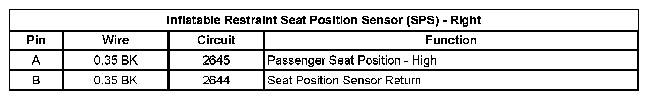 Inflatable Restraint Seat Position Sensor (SPS) - Right