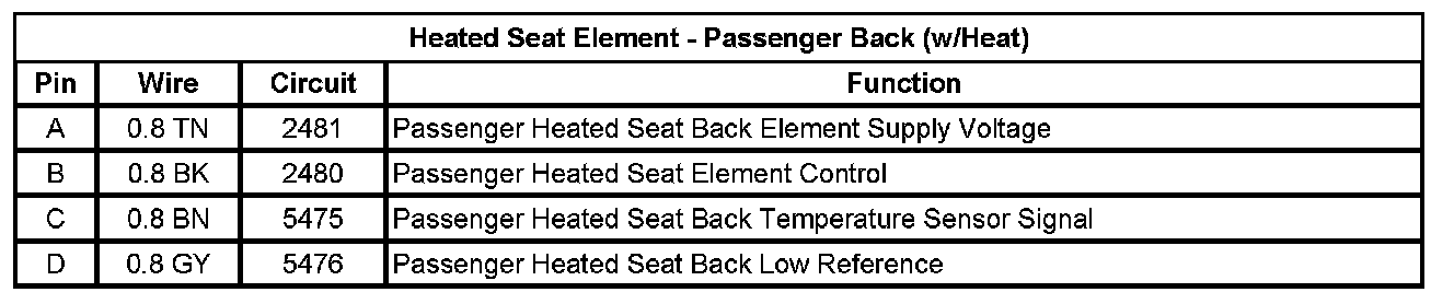 Heated Seat Element - Passenger Back (w/Heat)