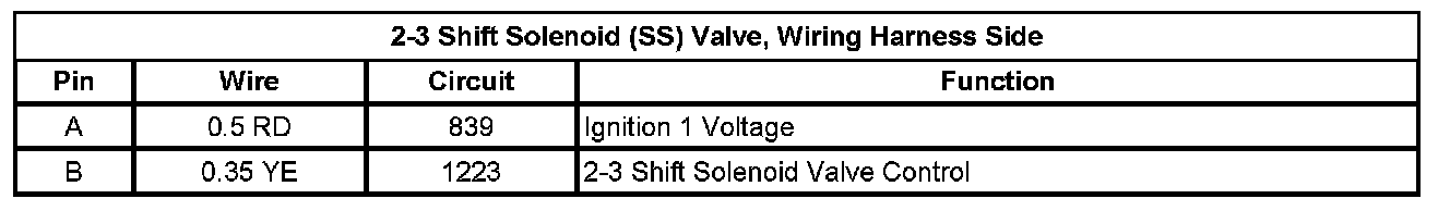 2-3 Shift Solenoid (SS) Valve, Wiring Harness Side