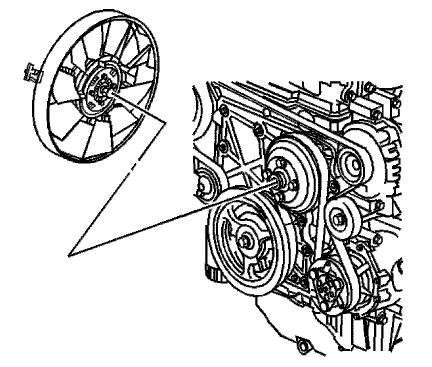 8. Lift and push the fan shroud inward to clear the filler neck on the radiator.