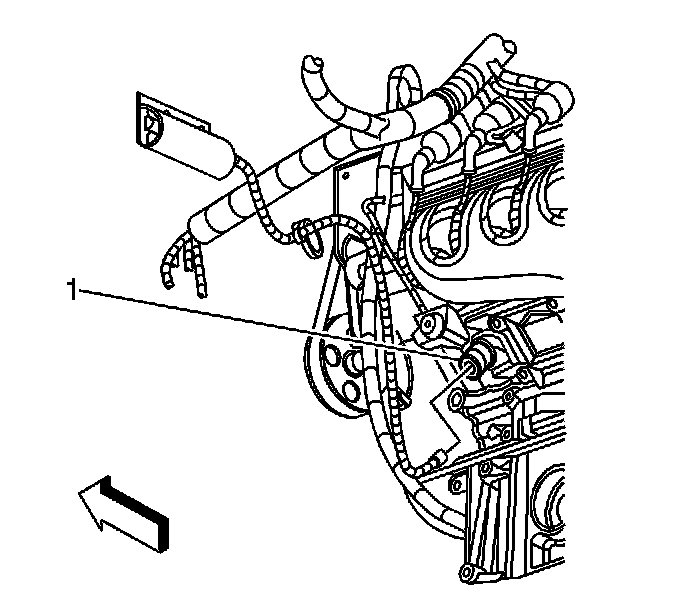 2. Remove the coolant heater cord from the engine harness bracket (1).
