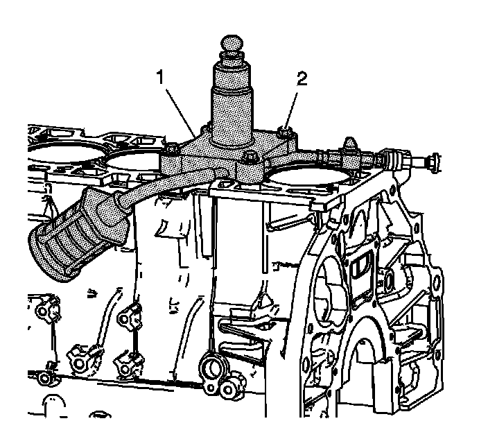 11. Install the 4 bolts EN 45680-414 (2) into the cylinder head bolt holes in the block.