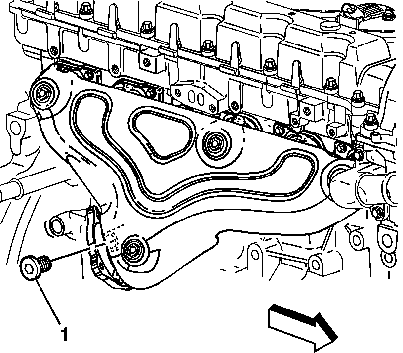 2. Remove the engine block oil gallery plug (1).