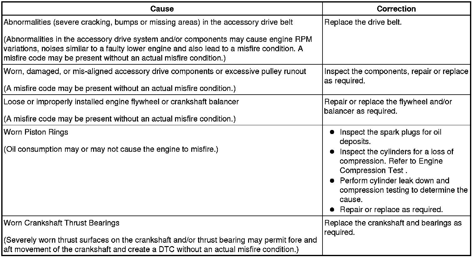 Base Engine Misfire With Abnormal Internal Lower Engine Noises