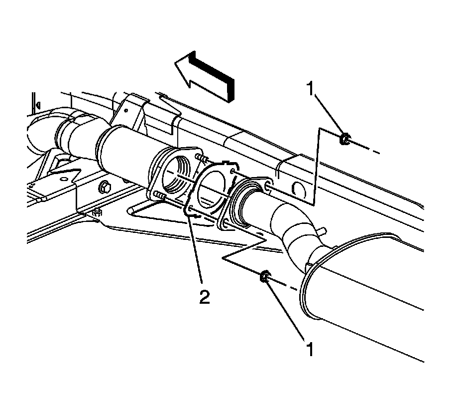 8. If equipped with a 5.3L, or 6.0L engine, remove the muffler to catalytic converter nuts (1).
