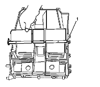 1. Install the air temperature door (1) to the lower module half.