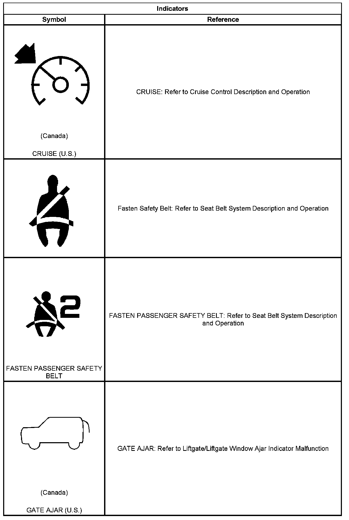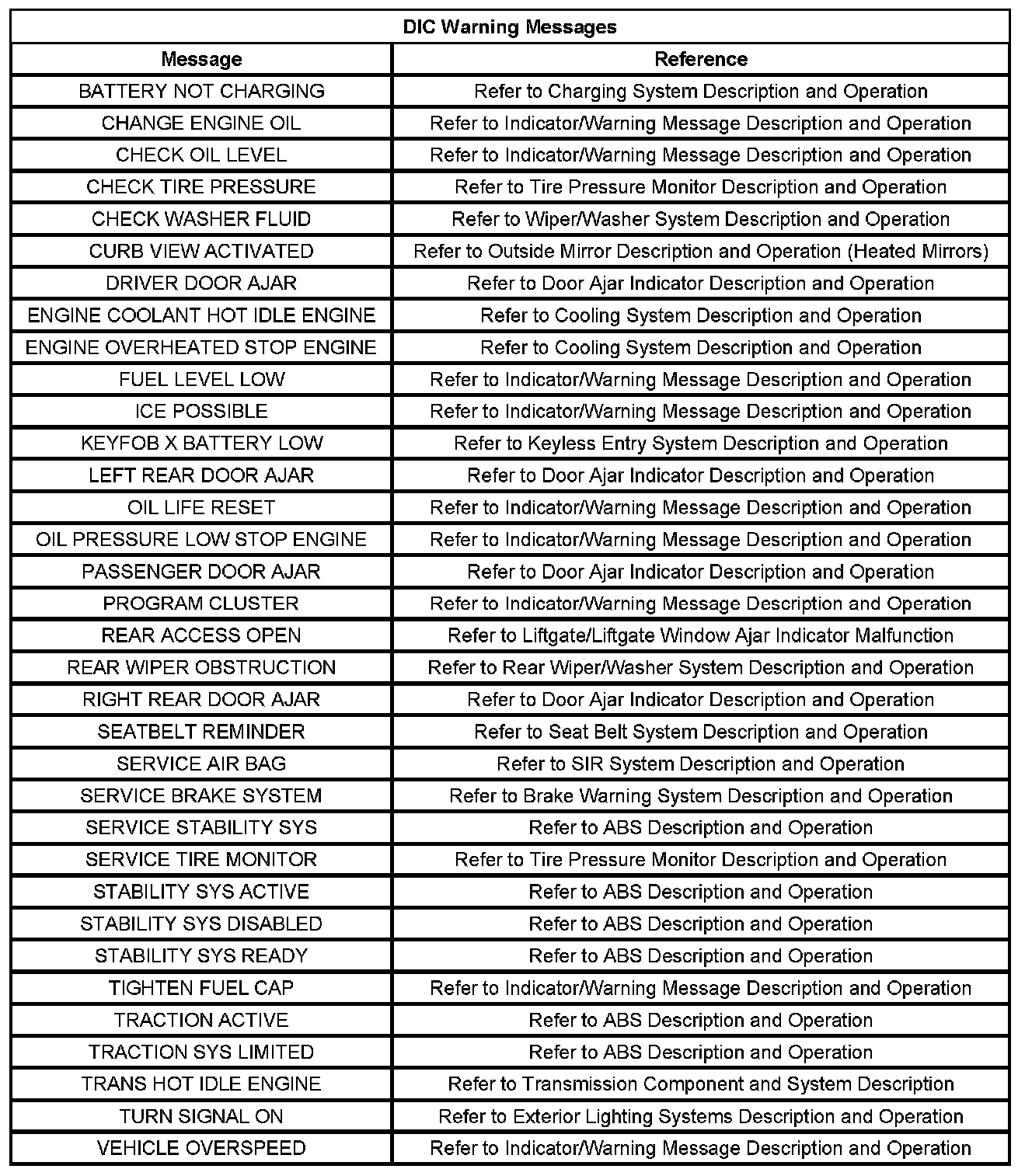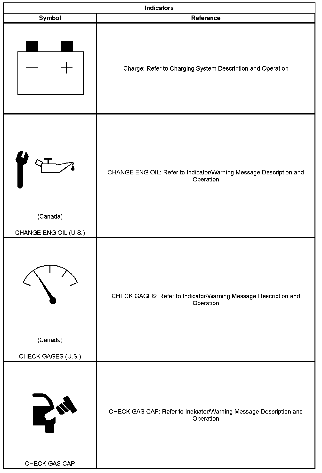 Indicator/Warning Message Description and Operation