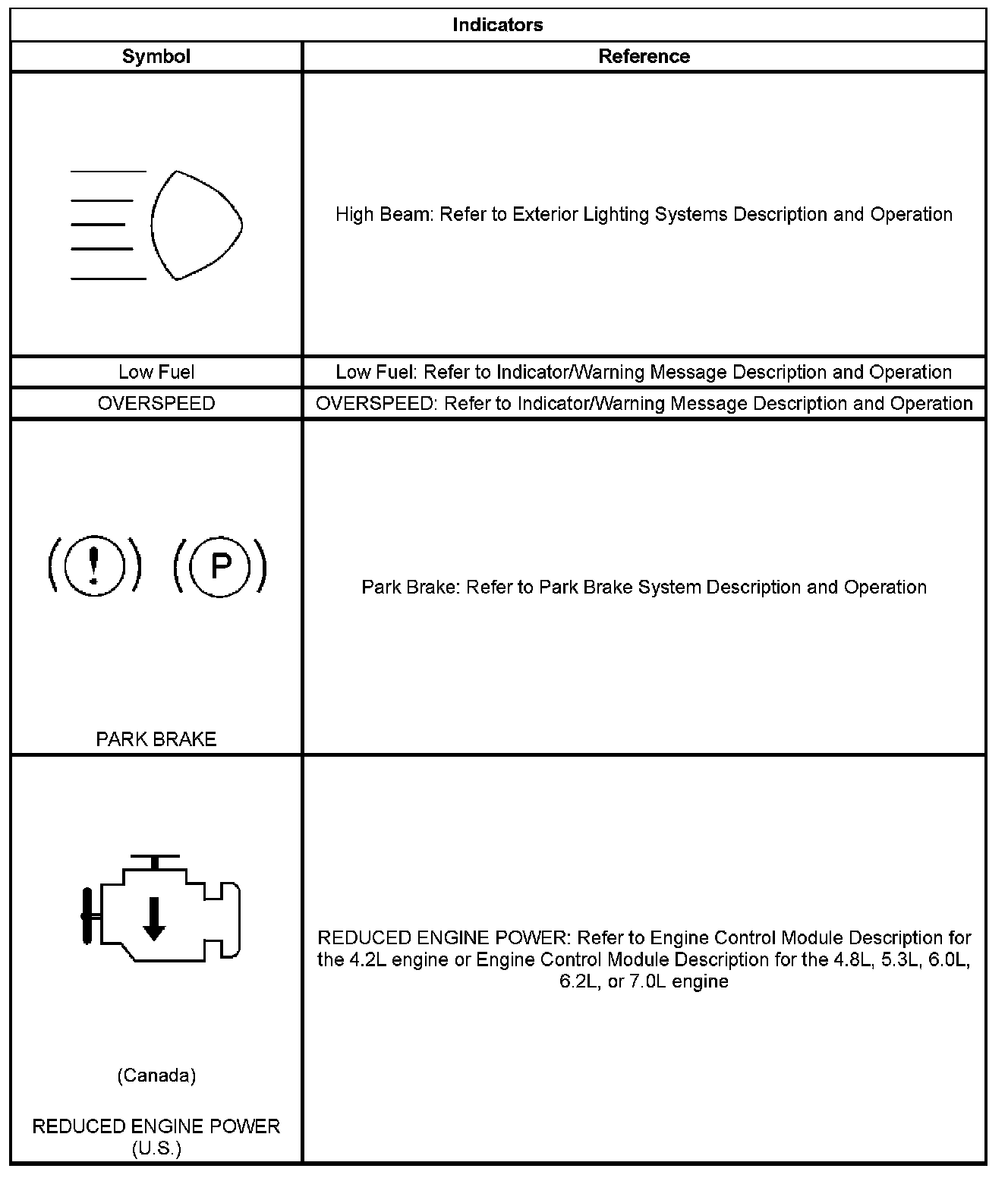 The instrument panel cluster (IPC) illuminates the OVERSPEED indicator when the IPC detects that the vehicle speed is more than 120 km/h (75 mph).