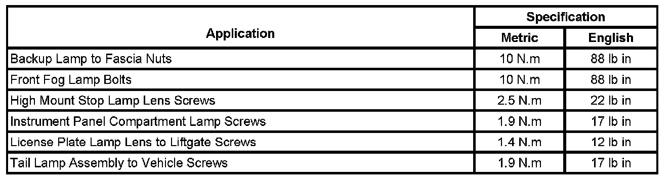 Fastener Tightening Specifications