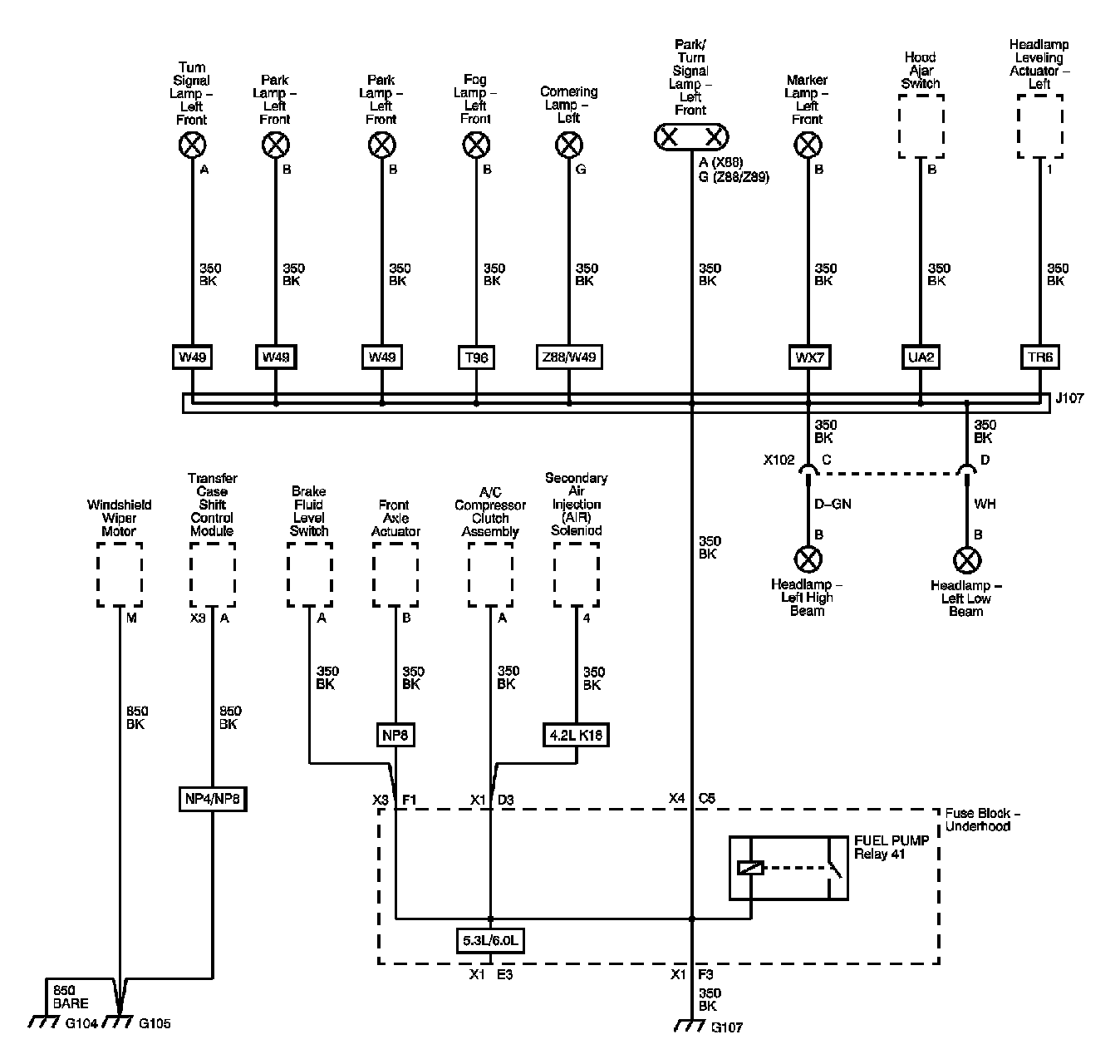 The locations for the Connectors, Grounds, Splices, and Grommets shown within these diagrams can be found via their numbers at Vehicle Locations.