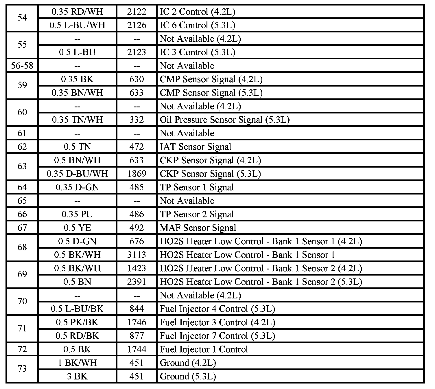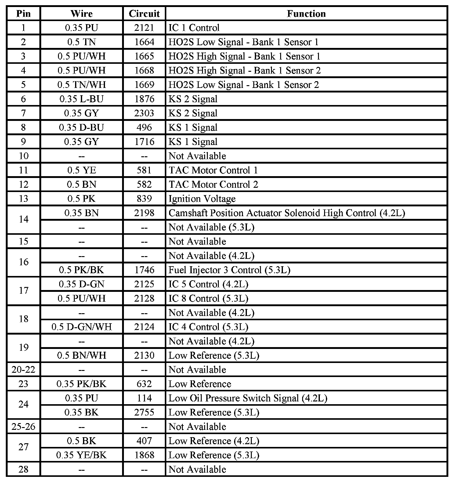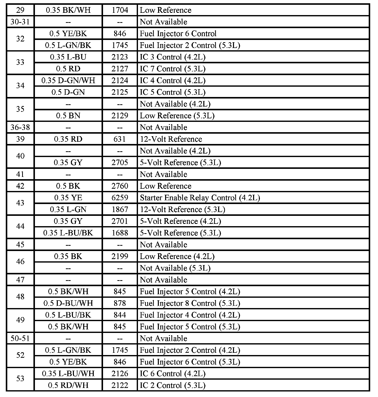 - Pins: 1, 17, 33, 34, 53, 54, 62 (5.3L)
