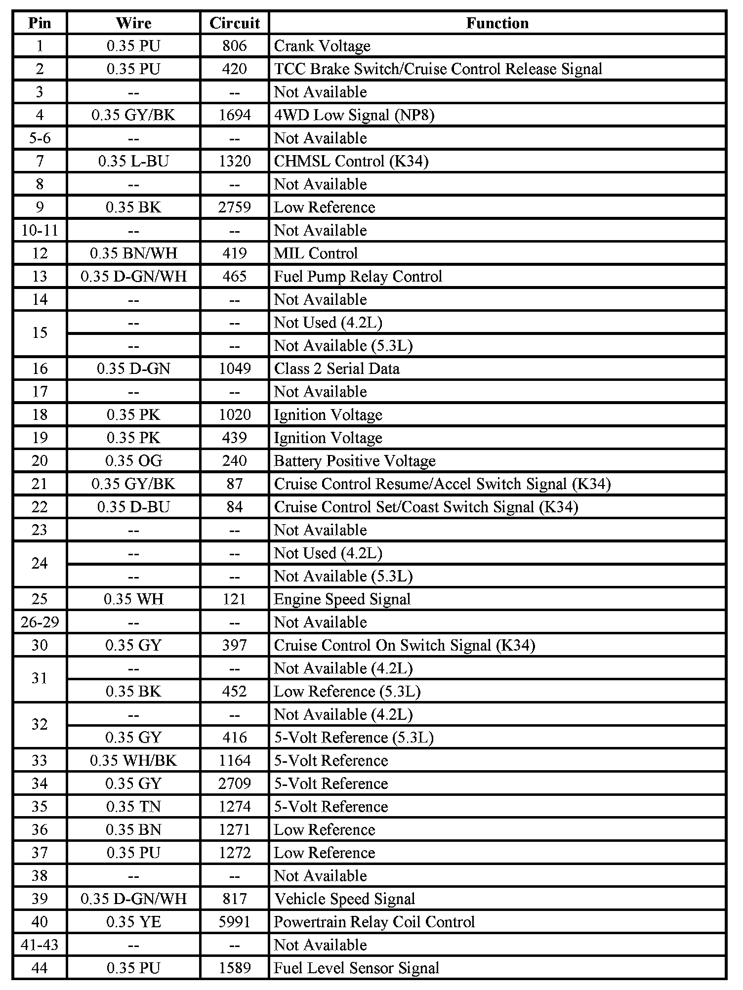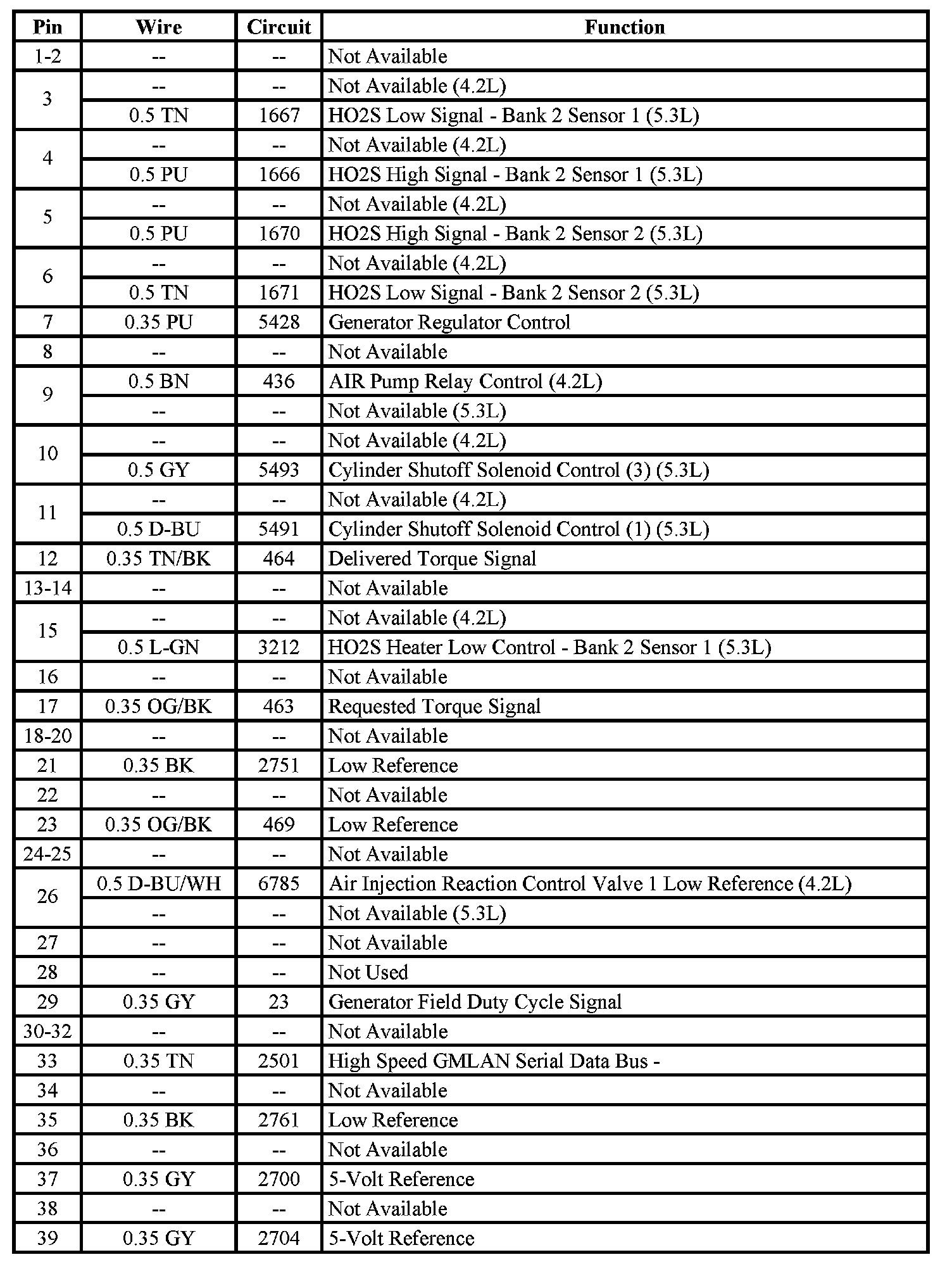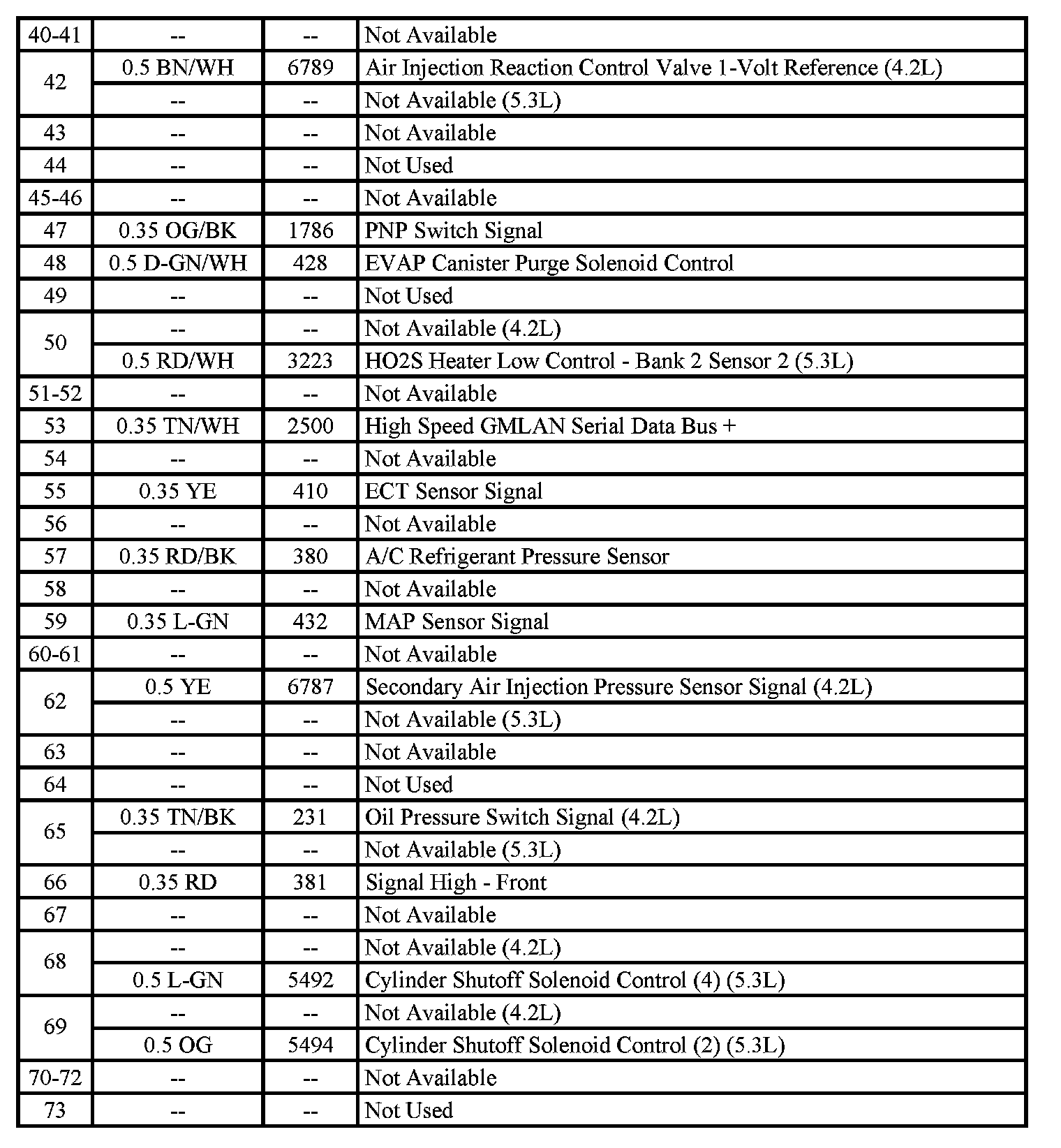 - Pins: 1, 17, 33, 34, 53, 54, 62 (5.3L)