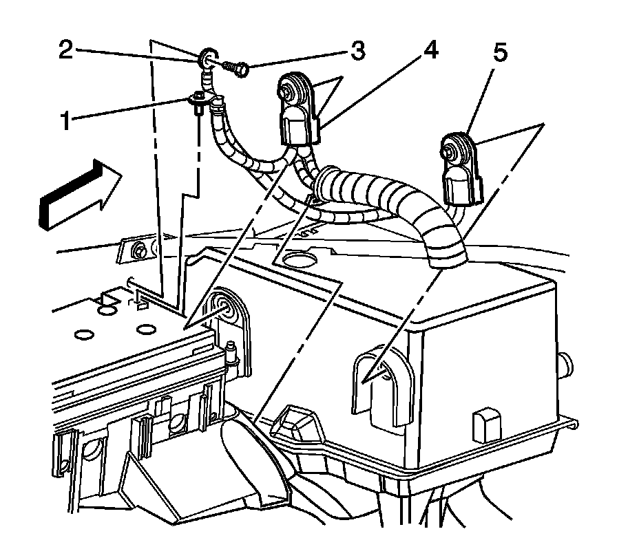 12. Disconnect the negative battery cable (5) from the fender and fuse block.