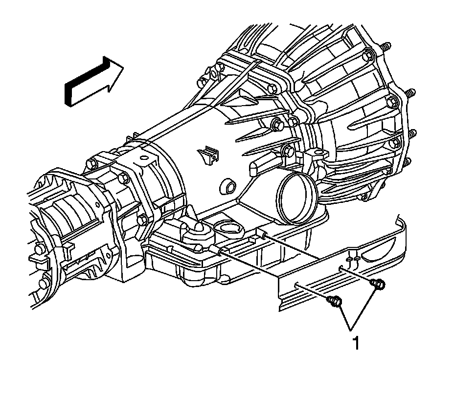 4. Remove the catalytic converter heat shield bolts (1) and shield.