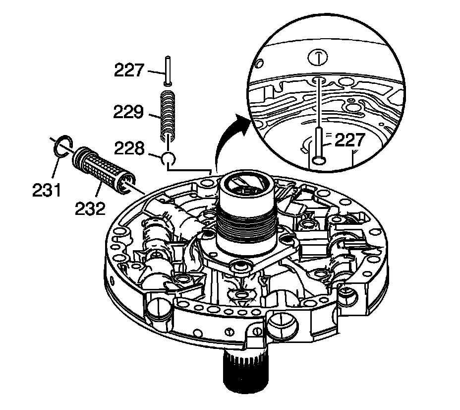 4. Install the pressure relief ball (228) and pressure relief spring (229).