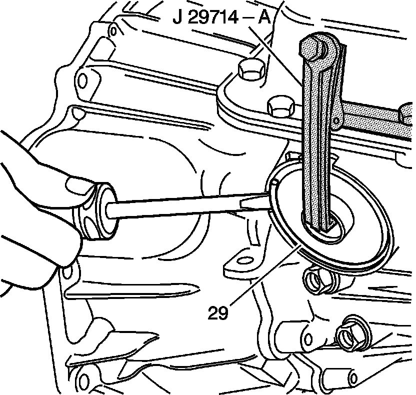 3. Remove the servo cover retaining ring (29) and the J 29714-A .