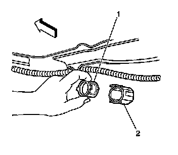 7. Insert the sensor into the housing (4) with the connector pointing toward the passenger side of the fascia. Press the sensor tabs into the cutouts on the housing (4).