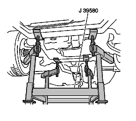 19.Lower the vehicle until the frame contacts the J 39580 .