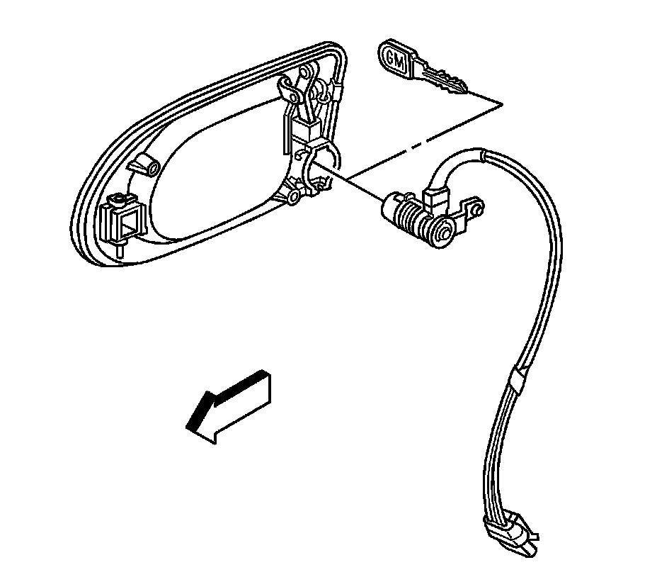 1. Remove the front door outside handle. Refer to Front Side Door Outside Handle Replacement (Service and Repair).