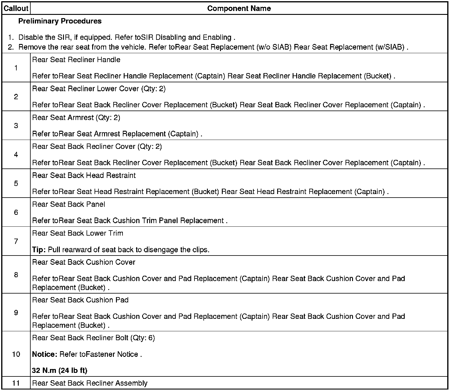 Rear Seat Recliner Replacement (Captain)