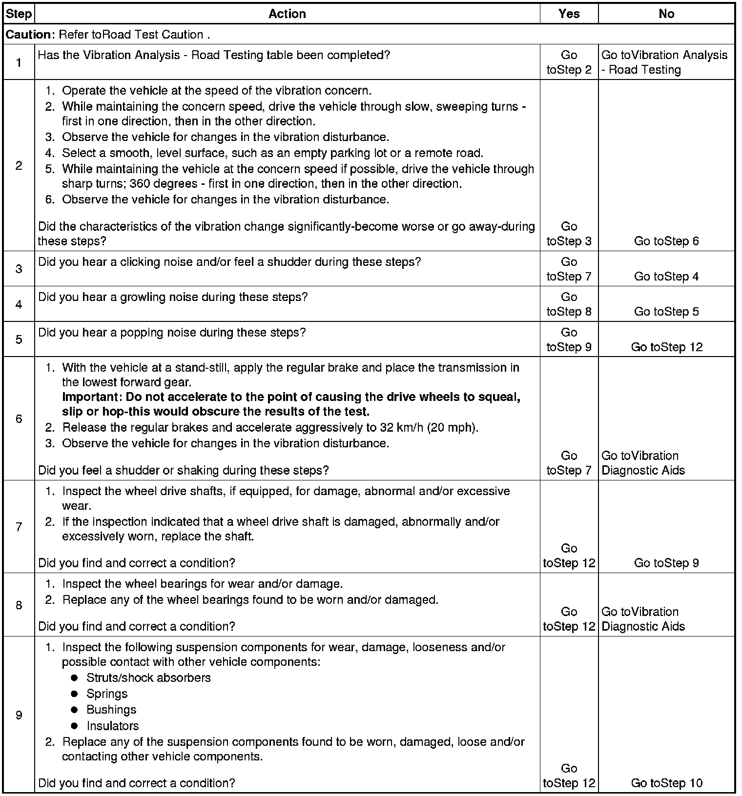 7. Damaged or worn wheel drive shafts may cause a noise or vibration that may be transferred into the passenger compartment.