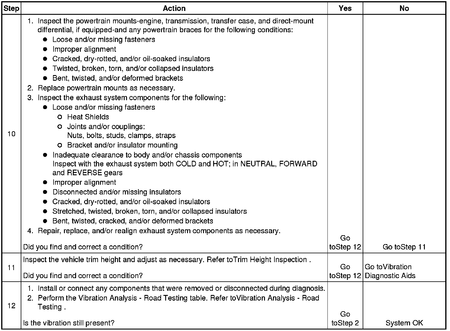 10. Damaged or worn powertrain mounts and/or exhaust mounts may cause a noise or vibration that may be transferred into the passenger compartment.
