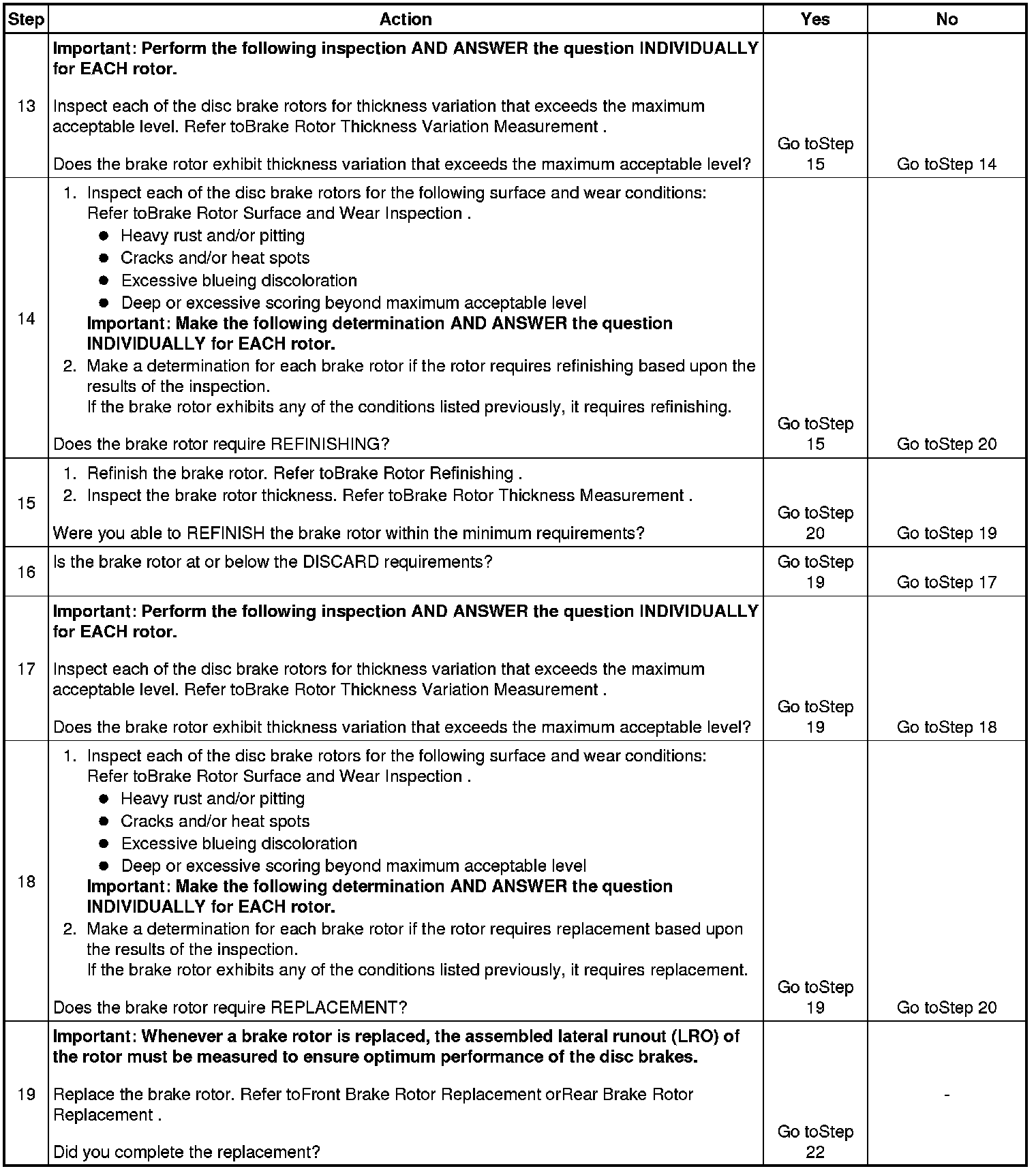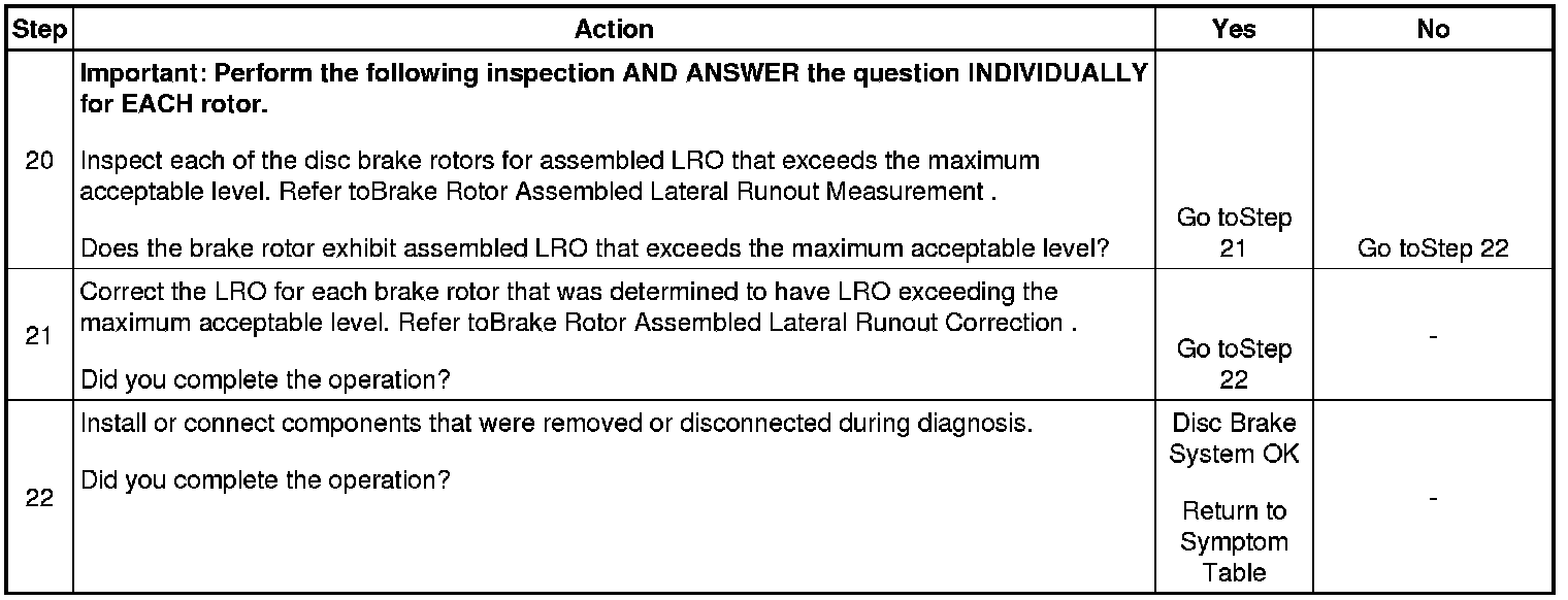 20. Disc brake rotor assembled lateral runout (LRO) that exceeds the maximum acceptable level can lead to thickness variation.