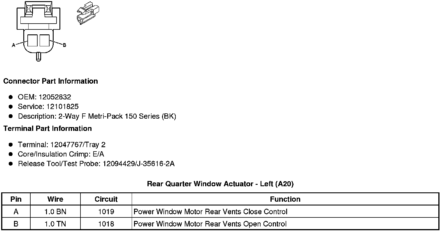 Rear Quarter Window Actuator - Left (A20)