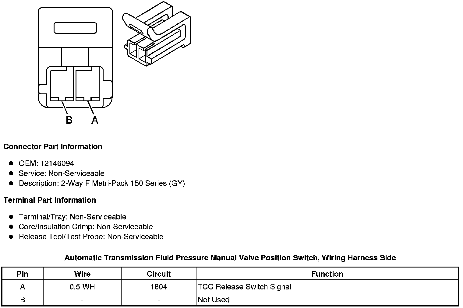 Automatic Transmission Fluid Pressure Manual Valve Position Switch, Wiring Harness Side