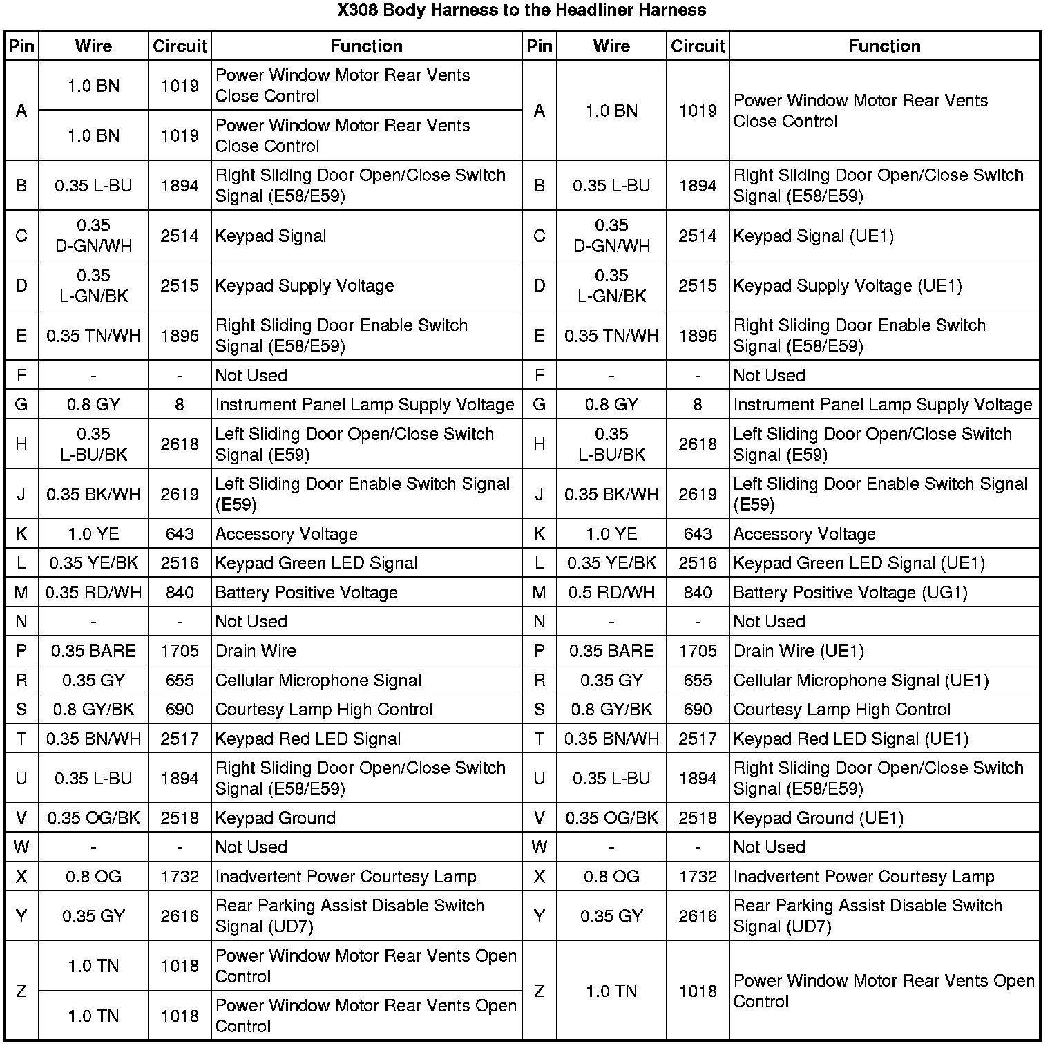 X308 Body Harness to the Headliner Harness
