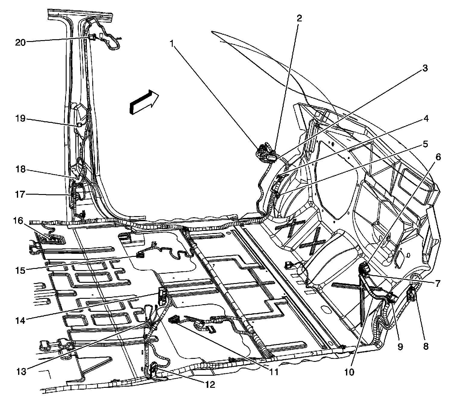16 - X305 Fuel Tank Harness and Rear Cross-Car Jumper Harness to Body Harness
