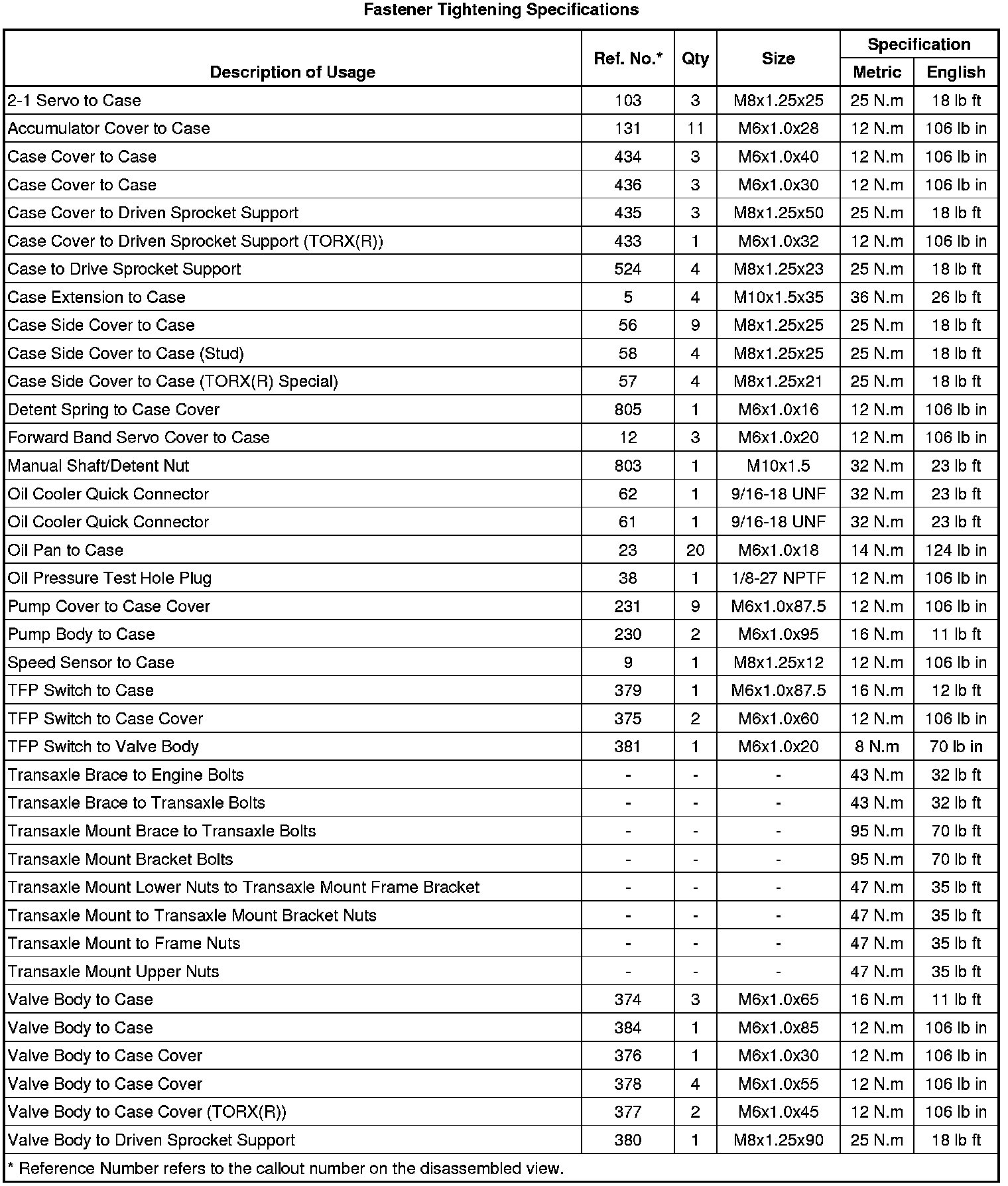Fastener Tightening Specifications