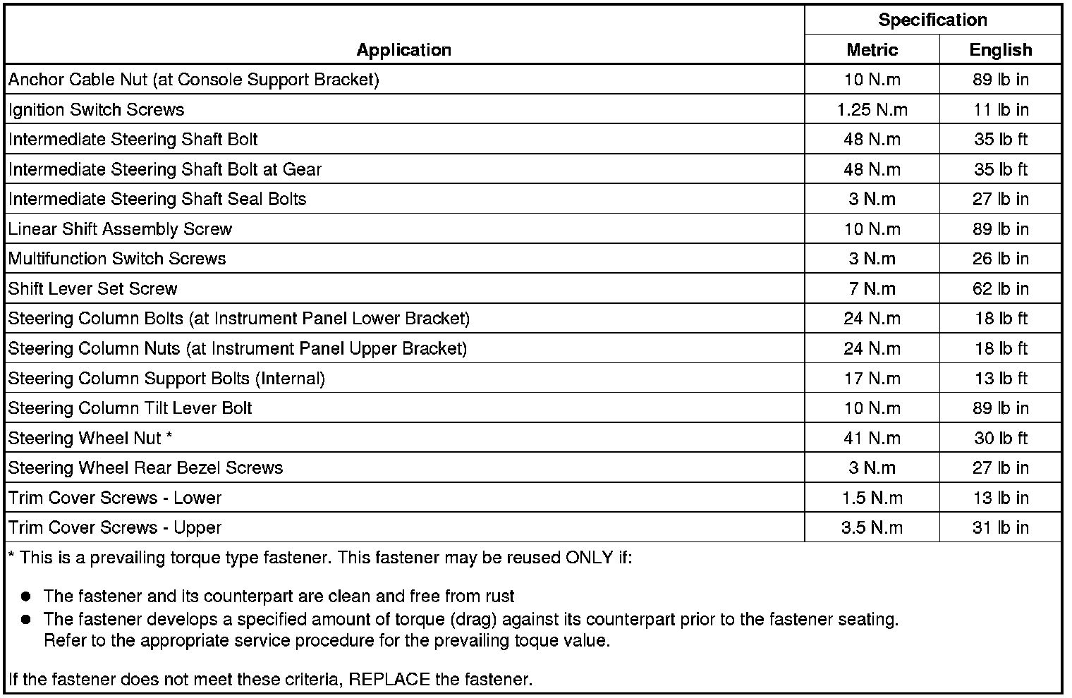 Fastener Tightening Specifications