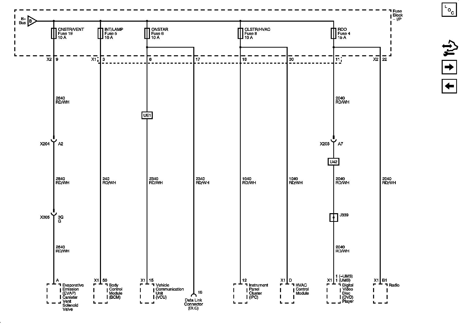 CNSTR/VENT, CLSTR/HVAC, INT/LAMP, ONSTAR, and RDO Fuses